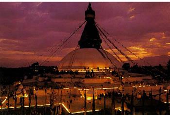 The stupa is built on many levels of terraces, and is painted with safron garlands and adorned with prayer flags. It is set in a mandala (mystical circle) design. Altogether 108 Buddha images and 147 inset prayer wheels adorn the base of the huge circular edifice. It was created in the mid 5th century and has had many renovations since. The last major update was in the middle 1850, when the outer ring of prayer wheels was added.